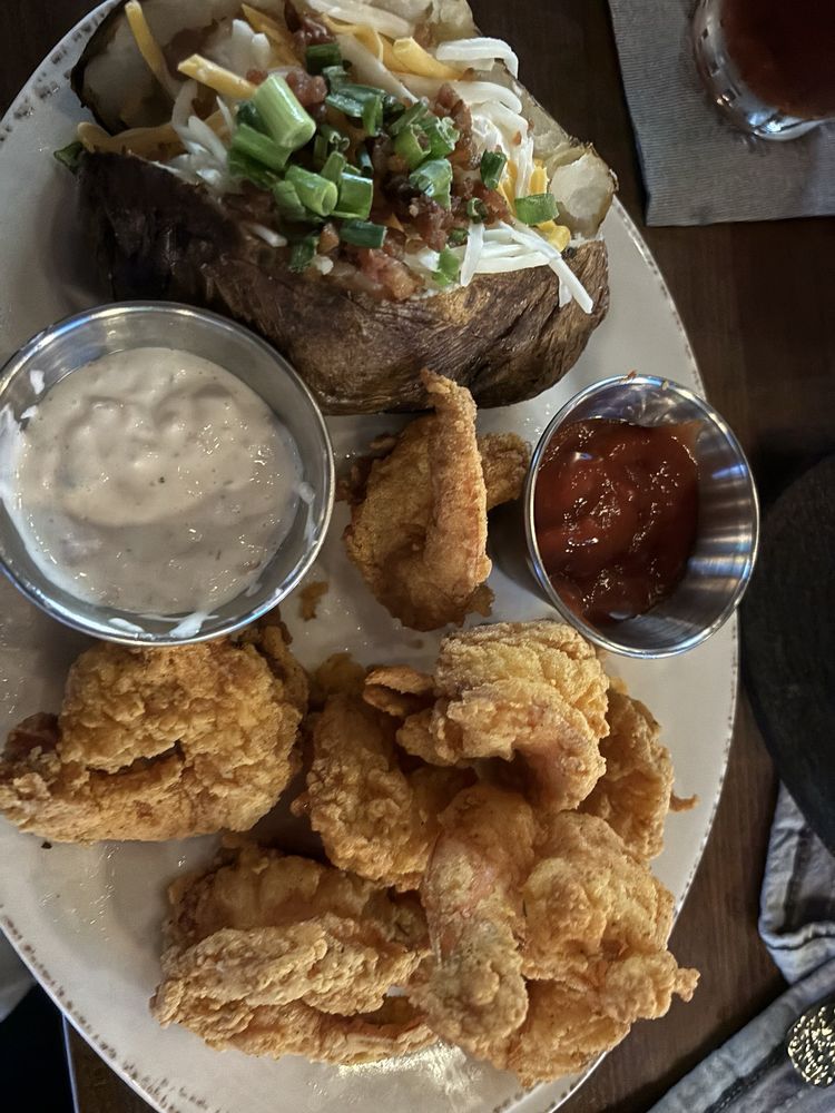 Tempura fried chicken nugs served with our homemade honey dijon and served with fries.