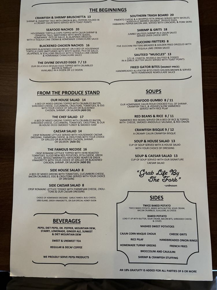 The standout dish, Redfish Zydeco Pan, features perfectly blackened redfish atop a savory bed of shrimp crawfish stuffing, accompanied by cajun corn maque choux and turnip greens, all for $32.00. For a unique twist, try the Southern Style Shrimp Crawfish Cakes, a delightful combination with remoulade sauce that pairs perfectly with rice pilaf.
