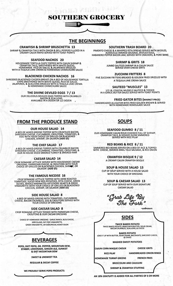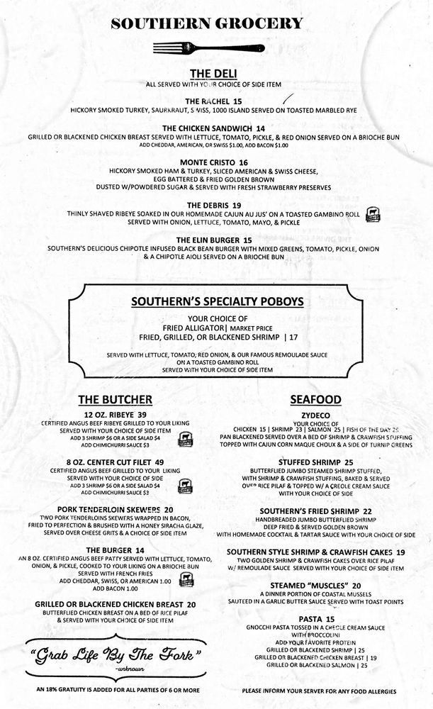 Welcome to Southern Grocery, a culinary gem located at 1419 E 2nd St, Sheffield, AL. This unclaimed eatery offers a vibrant taste of Southern cuisine, perfect for seafood lovers and meat aficionados alike.